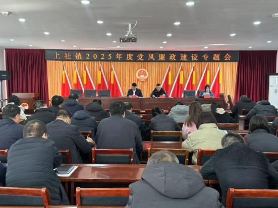 2025年2月19日上午,上社镇召开2025年度党风廉政建设专题会,镇党委书记李小军,镇党委副书记、高伟出席会议,所有班子成员,机关干部,各行政村党支部书记、村委会主任,驻村第一书记参加会议。