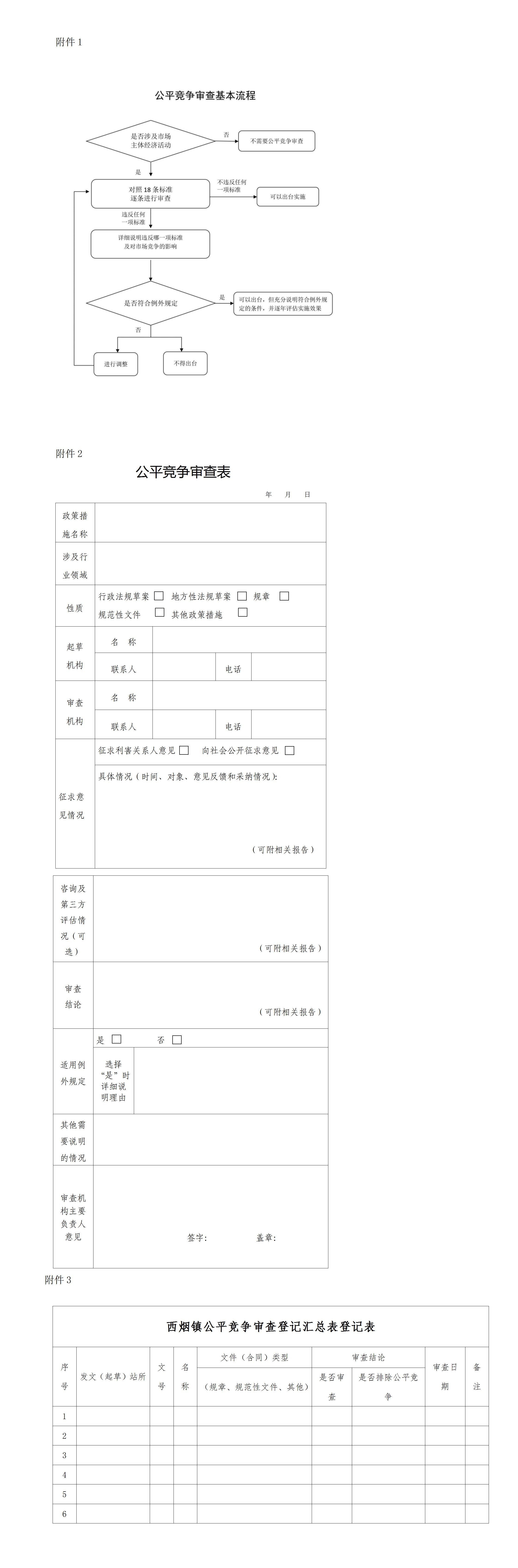 (三)所有进行过公平竞争审查工作的文件,均需填写《西烟镇镇公平竞争审查汇总登记表》(附表3),并将审查结果于每月28日报送至镇公平竞争审查领导小组办公室。