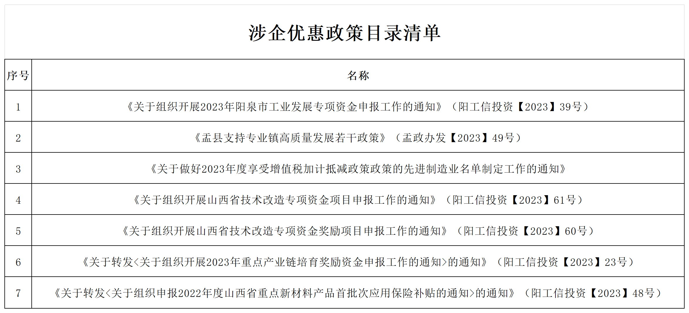 涉企优惠政策目录清单