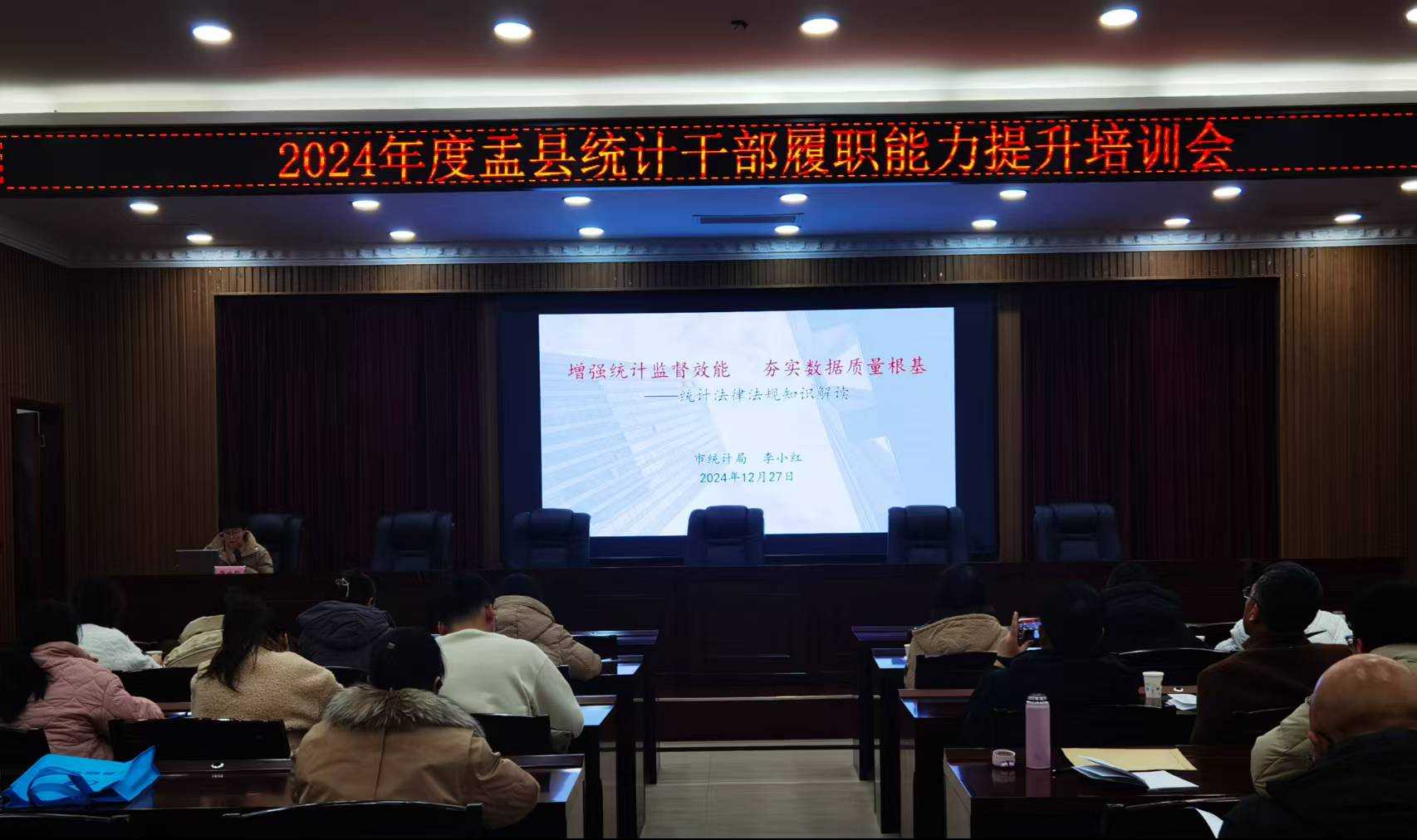 为深入学习贯彻新修改《中华人民共和国统计法》,强化统计干部依法统计意识,进一步提升统计人员专业能力,12月30日,县统计局召开了统计干部履职能力提升培训会,县统计局全体职工及各乡镇统计员50余人参加培训,副局长朱毅婷作开班动员讲话。