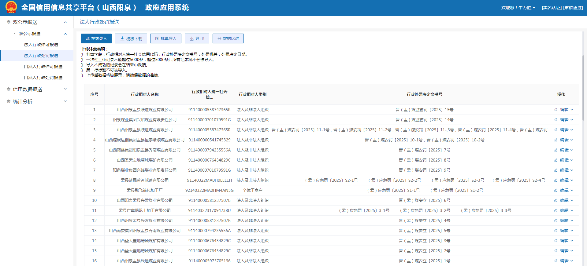 2025年行政处罚公示