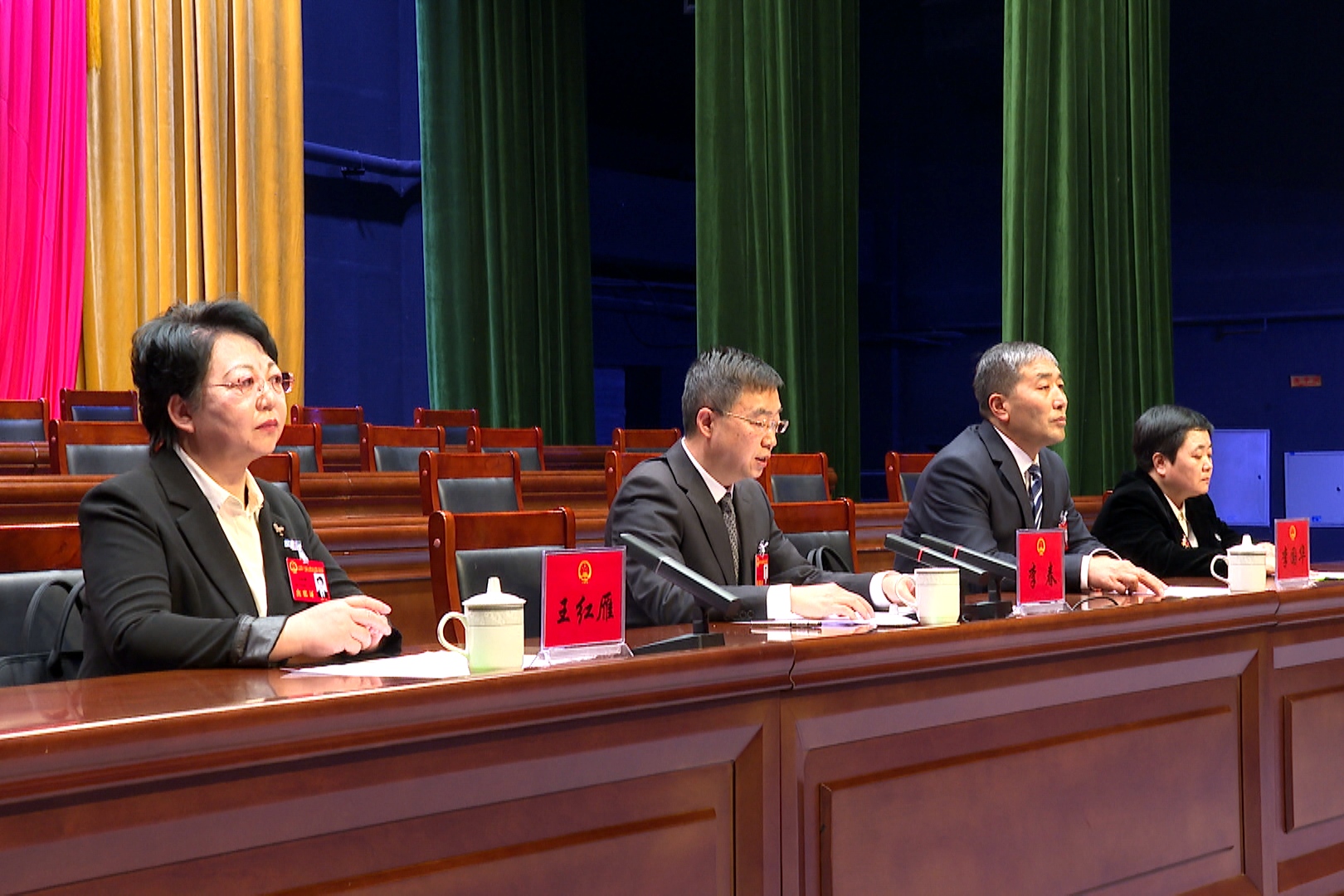 县人大常委会主任李春主持会议,县人大常委会副主任李国华、王红雁、武香平在主席台就座。