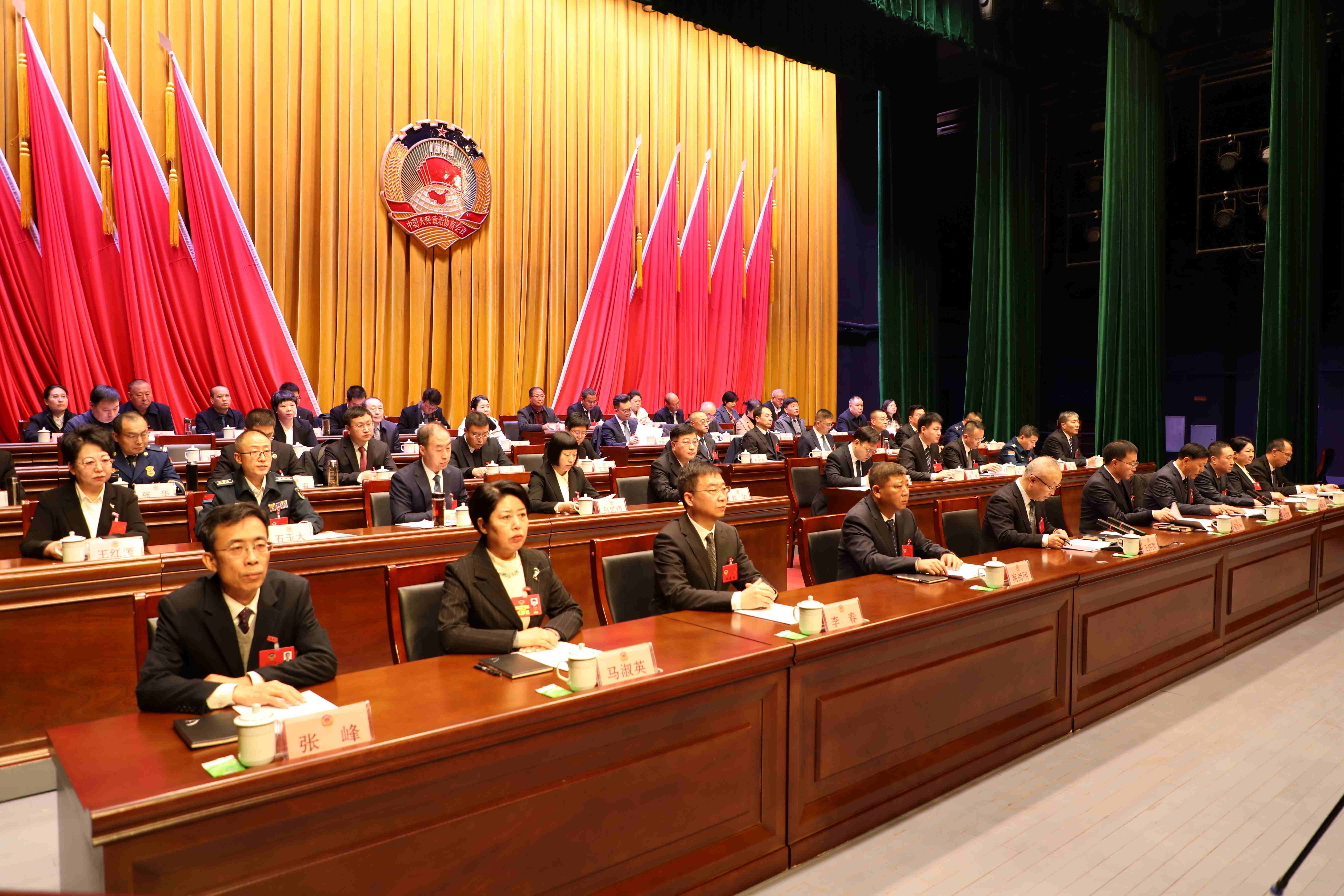 大会执行主席史俊宝、韩志勇、马淑英、张翠平、张峰、庞秀峰在主席台前排就座。