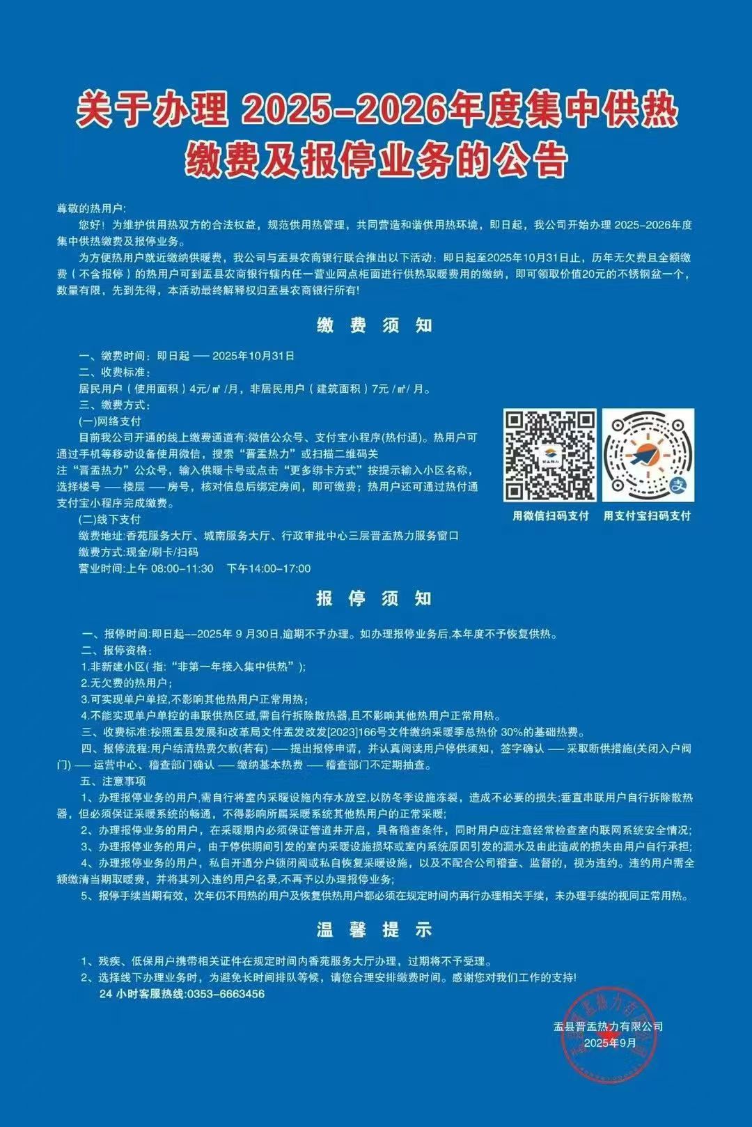 关于办理2025-2026年度集中供热缴费及报停业务的公告