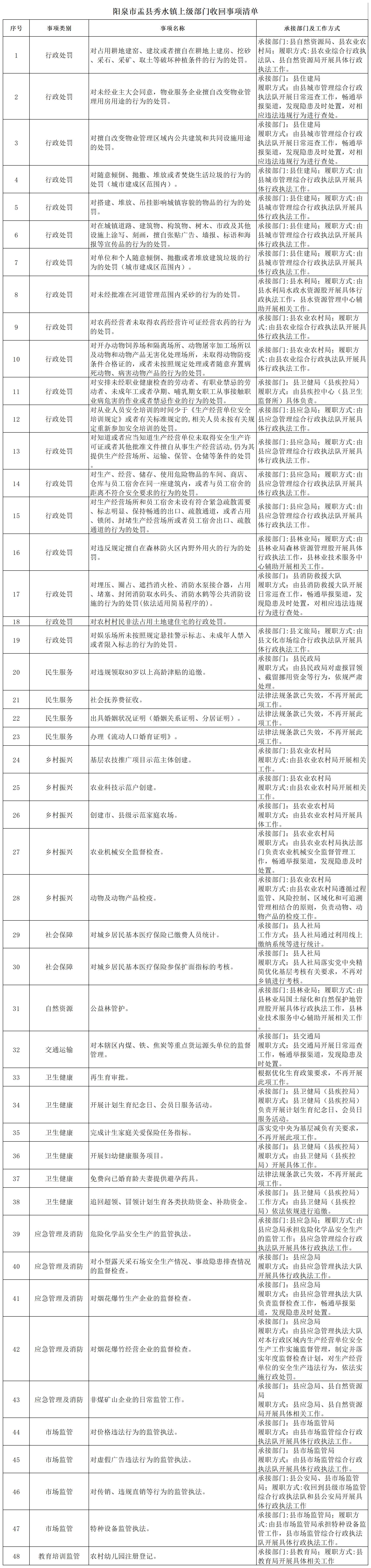 盂县秀水镇履行职责事项清单