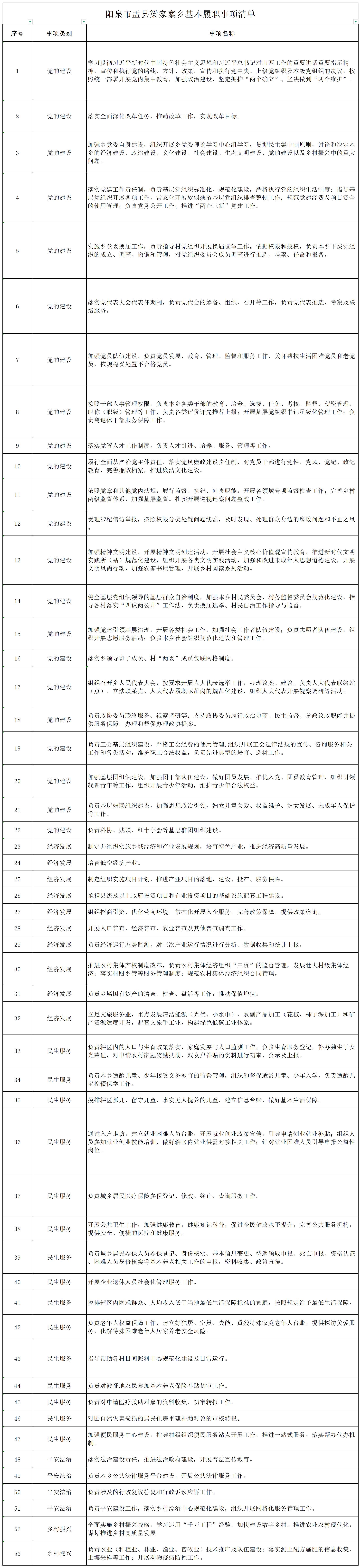 盂县梁家寨乡履行职责事项清单
